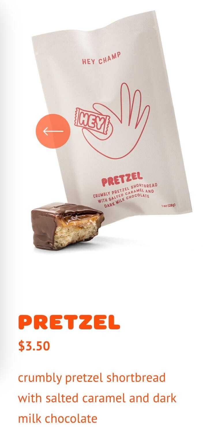 This week’s emotional eating featured new artisan candy maker/confectioner/pastry genius Hey Champ. Alexa Norlin, the creator of Utah’s normal ice cream and soft serve (the only ice cream shop ever to be nominated for a James Beard semifinalists award), launched this line of high-brow/low-brow candies earlier this year. So far, three flavors are available online (Pretzel, Coconut, and Miso Caramel) in individual packs and are worth it for anyone who 1) Appreciates great pastries and candy and 2) Considers themselves an early adopter of cool shit.